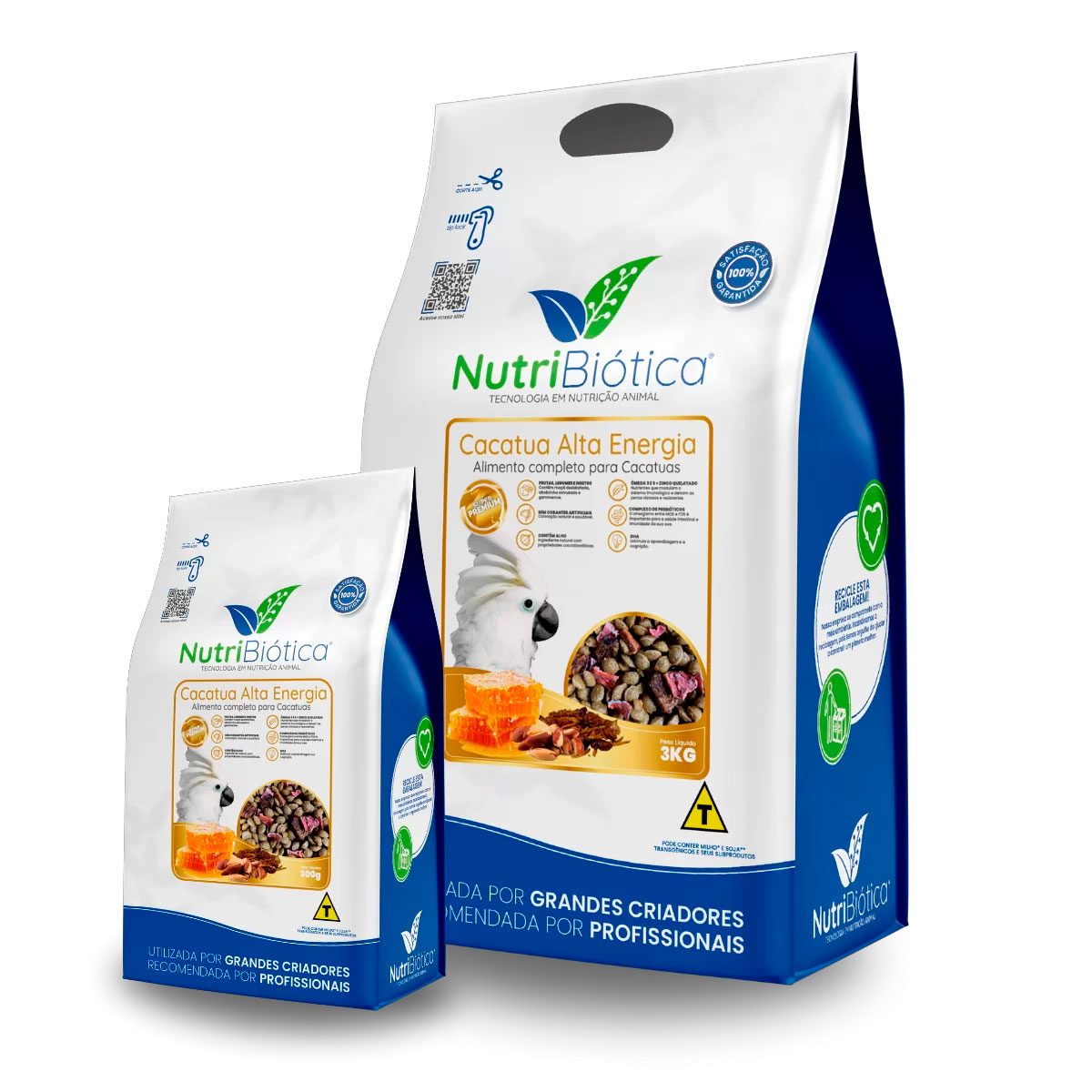 A Nutribiótica Super Premium Cacatua Alta Energia é um alimento completo e balanceado para Cacatuas de médio e grande porte nas fases de manutenção e reprodução, que possuem o hábito alimentar de consumir sementes não oleaginosas.