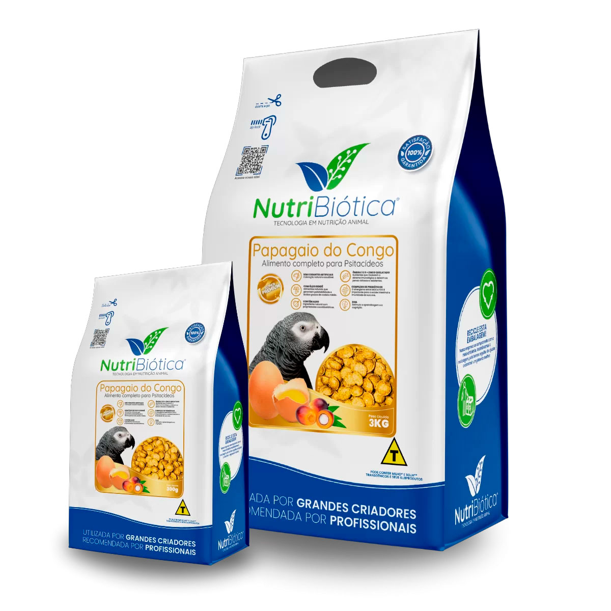 A Nutribiótica Super Premium Papagaio do Congo é um alimento completo e balanceado para Congos de médio e grande porte nas fases de manutenção e reprodução, que possuem o hábito alimentar de consumir sementes não oleaginosas.